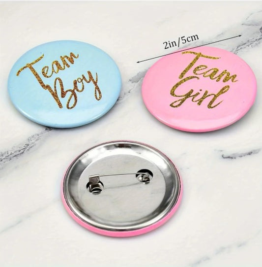 20 PACK - Gender Reveal Team Boy & Team Girl Badges